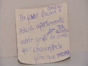 | Bilhete encontrado no quarto (Foto: TV Verdes Mares/ Reprodução) |