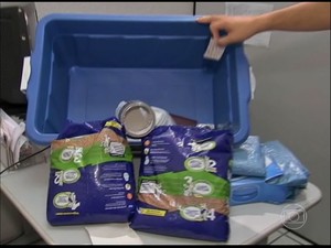 | Caixa com areia foi apreendida no flat e foi pedida pelo pai para enterrar o menino (Foto: TV Verdes Mares/Reprodução) |